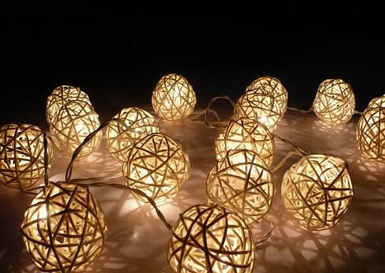 Cream White Rattan Ball String Fairy lights – 5cm diameter