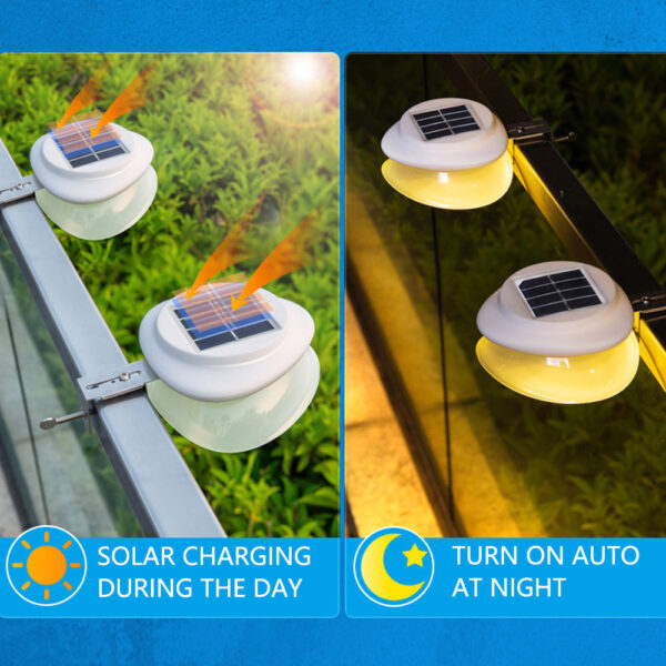 Recharged by solar panels under sun light, gather energy even on overcast days, turn on automatically at dusk.