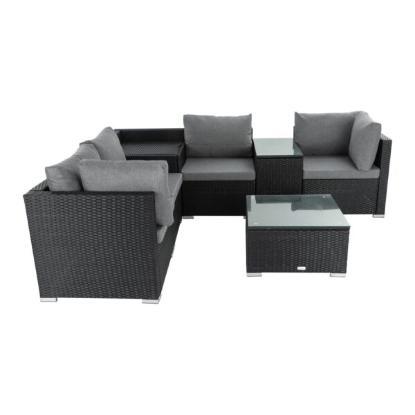 7PC Outdoor Wicker Loveseat Setting with Storage Corner (Black)