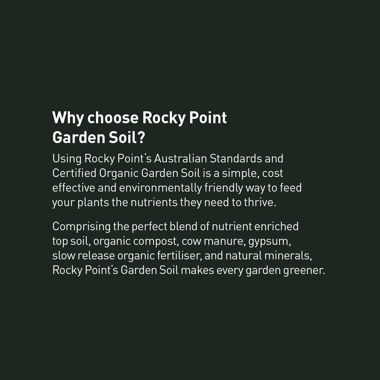 | Superior Soil Conditioning | Dramatically improves soil structure, water retention, and drainage while increasing beneficial microbial activity and organic matter content. |