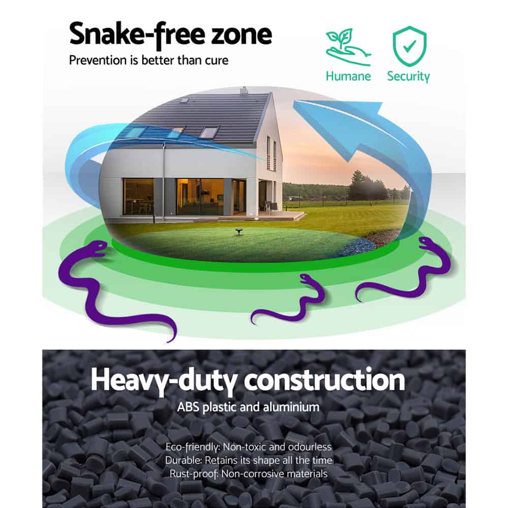Deter snakes humanely with our Solar LED Snake Repellers. Emitting sonic pulses and vibrations, these weatherproof devices are powered by a solar panel and double as night lights. Perfect for gardens, yards, and camping, each repeller ensures peace of mind without chemicals.