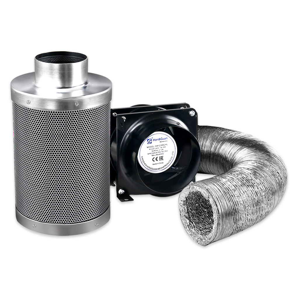 Comprising a 6″ Ventilation Fan, 6″ Active Carbon Filter and 5m Aluminium Ducting, the Ventilation Kit is designed to provide pure and clean air for your plants at all times. The Fan features high impact polycarbonate blades that deliver ample airflow in the grow tent, through the carbon filters and to cool the light reflector. It also works silently and efficiently. The Carbon Filter is manufactured with a fine mesh for the outer and internal layer and packed with activated charcoal in between. The Filter absorbs all nasty odours and pollens that float through the air or emitted from your plants. Not least, the 5m heavy-duty dual layer Aluminium Ducting is fire-resistant and allows for easy connection without any special tools.