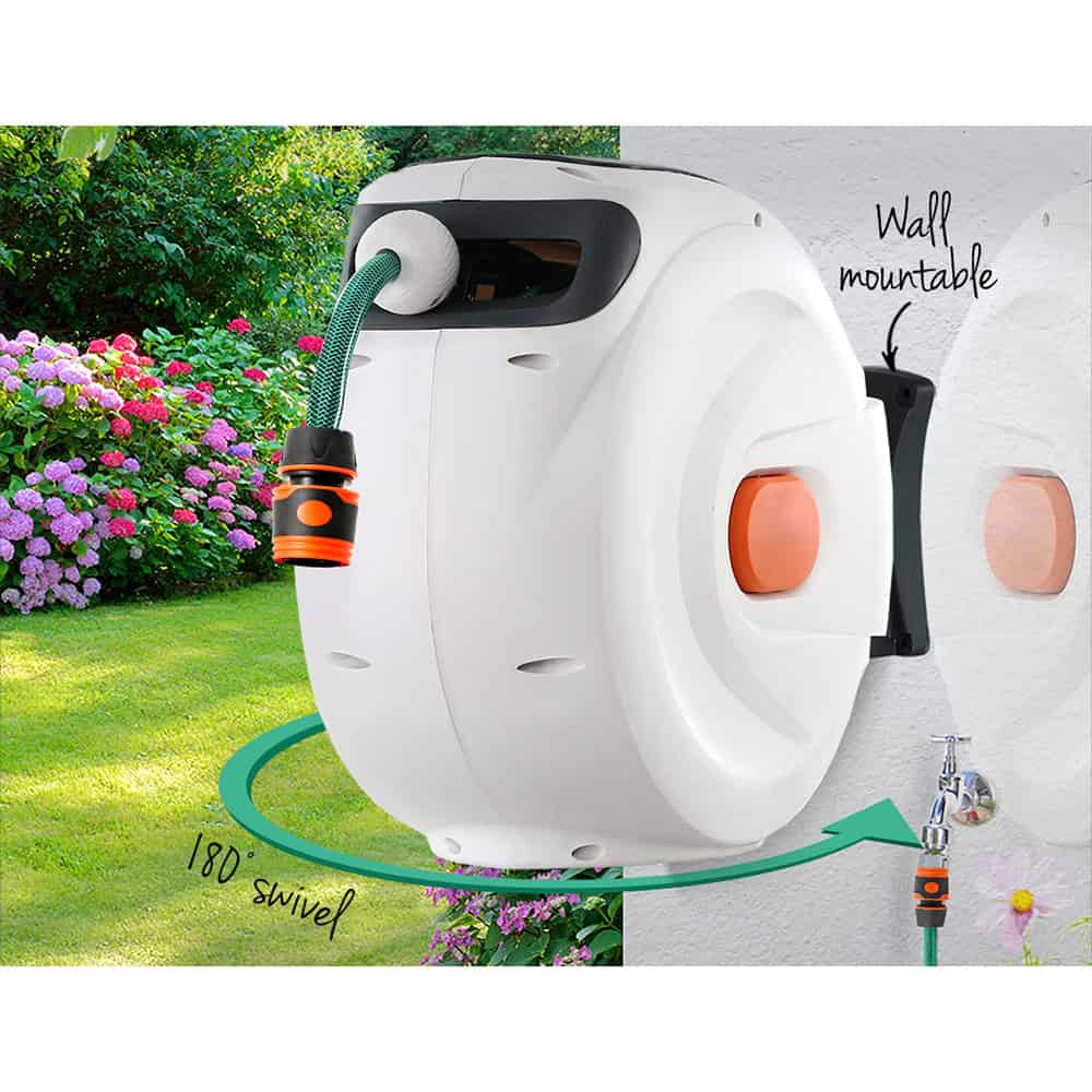 Tired of manual unwinding and rewinding your hose reel? Or tangles and kinks with the hose because you cant unwind and rewind it properly? Or perhaps your long hose is just an unsightly mess in your garden? Well, those days are history with our Green Fingers Retractable Hose Reel.