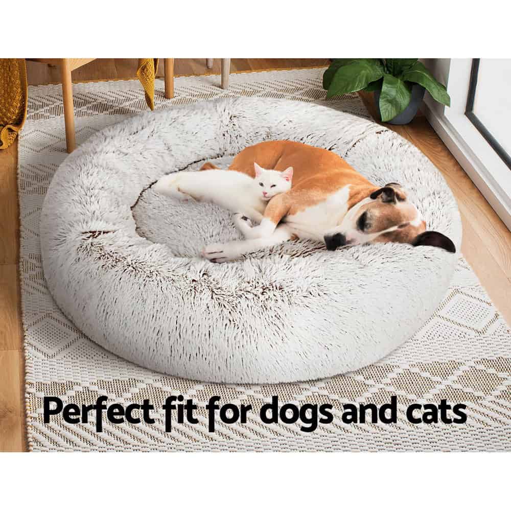 i.Pet Pet Bed Dog Cat 90cm Large Calming Soft Plush White Brown