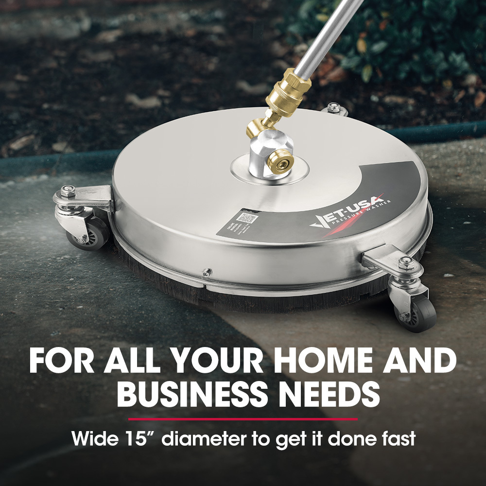 Jet-USA 15″ Stainless Steel Pressure Washer Surface Cleaner, 1/4″ Fitting, For Concrete Driveway Patio Floor