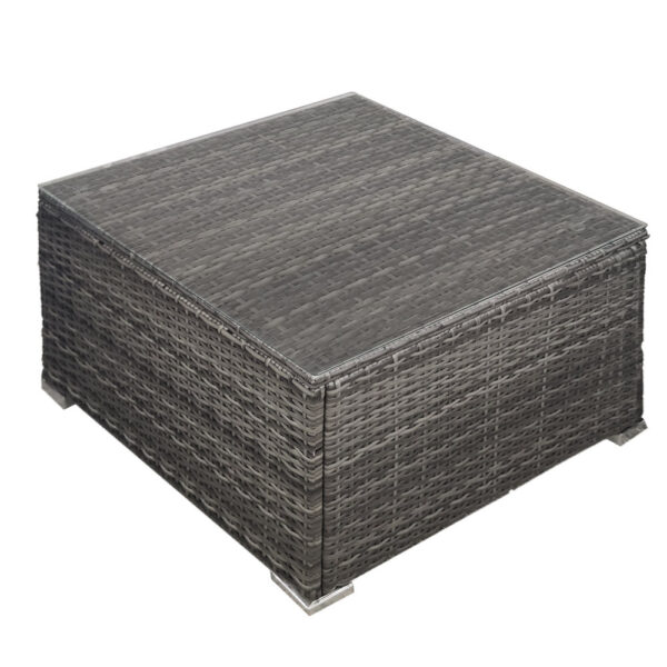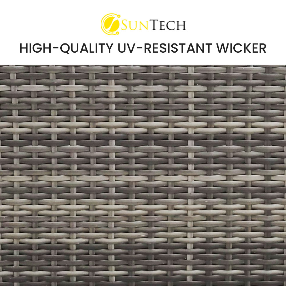 The coffee table includes a tempered glass table top. The high-quality UV-resistant handwoven Suntech wicker in Marl Grey weave has a premium natural textured look. Mix and match with other London Rattan modular pieces to create your own custom outdoor setting. You can set it up in whatever configuration works best for you, making this London Rattan outdoor ottoman a great addition to any outdoor space.