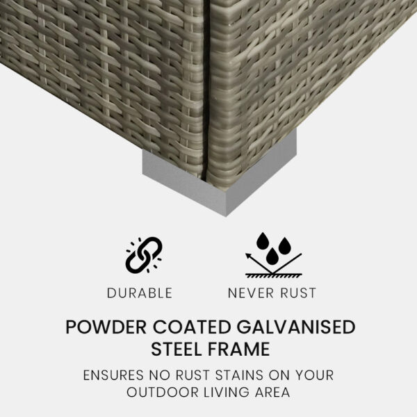 This London Rattan Outdoor Coffee Table is a stylish yet affordable outdoor piece designed to provide utmost convenience. The London Rattan outdoor coffee table has a durable galvanised steel frame with additional powder coating, ensuring no rust stains on your outdoor living area.