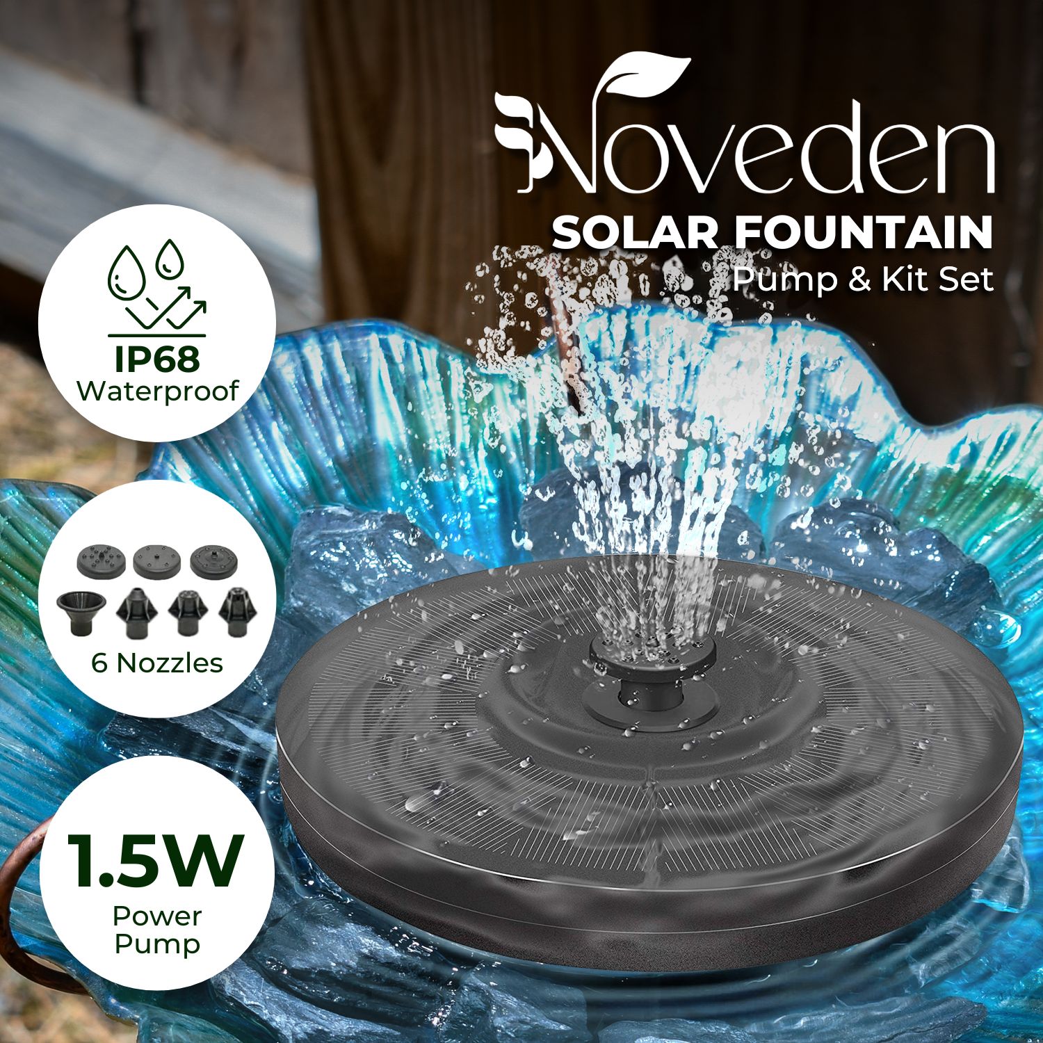 - Sustainable: The NOVEDEN solar fountain pump operates solely on solar power, making it a sustainable choice.