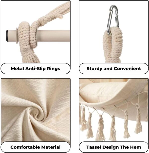 Noveden Hammock Chair Hanging Rope Swing with 2 Seat Cushions Included Beige