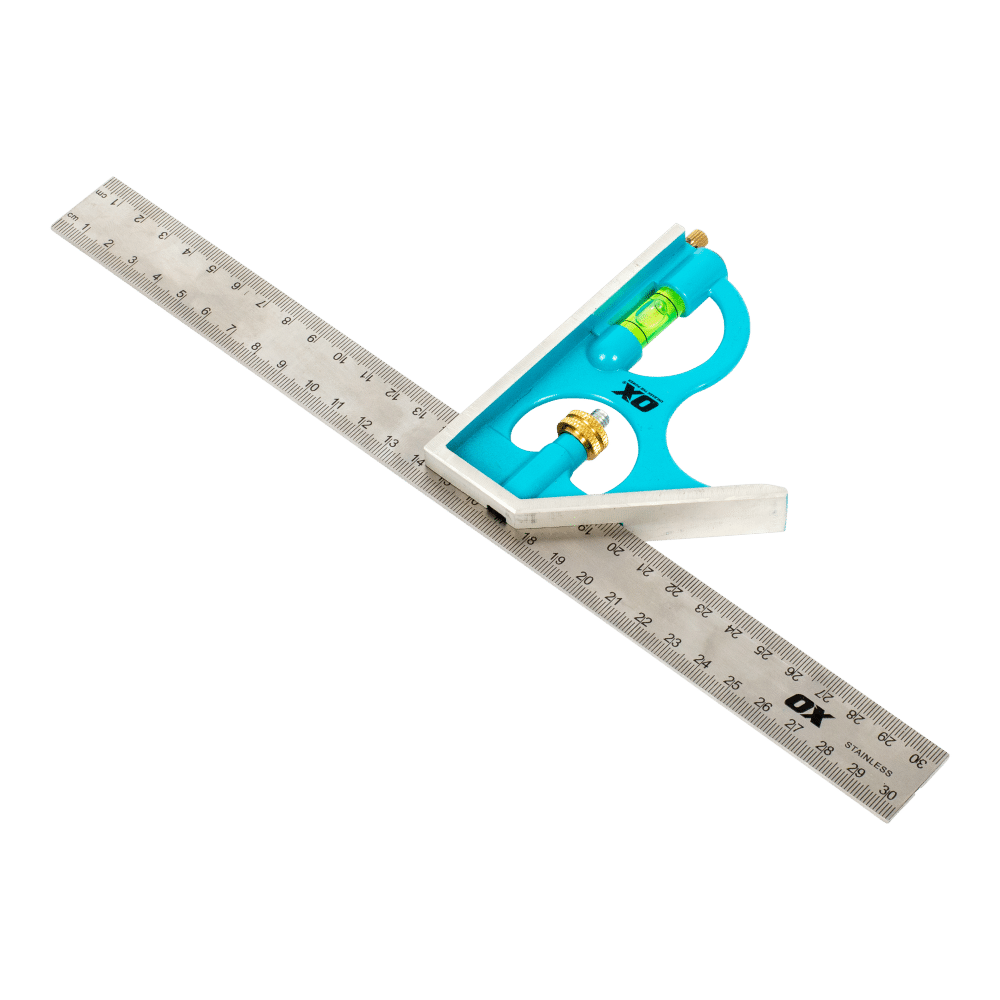 The OX Pro 305mm Combination Square is a precision tool designed for accurate marking and scribing in various trades, including woodworking and metalworking. It features a high-quality cast and machined sliding stock for durability and smooth operation. The stainless steel rule is engraved with clear metric graduations, ensuring precise measurements. This versatile tool allows for marking at both 90° and 45° angles, with adjustable depth settings to facilitate repetitive tasks. Its marking and scribing capabilities make it an essential instrument for professionals seeking accuracy and efficiency in their work.