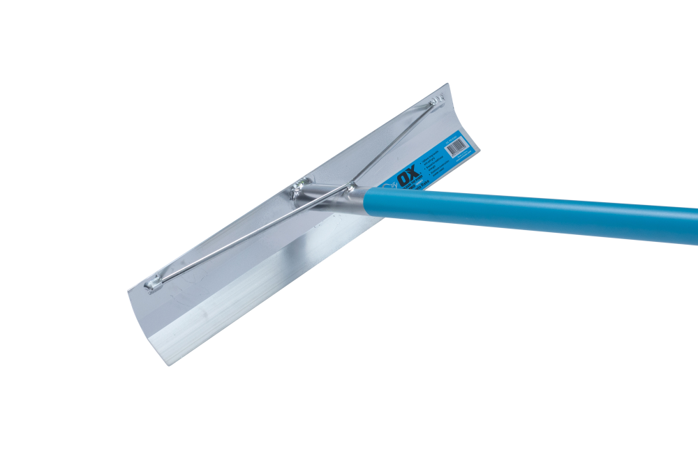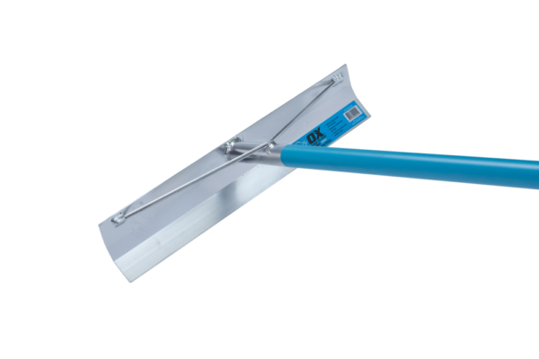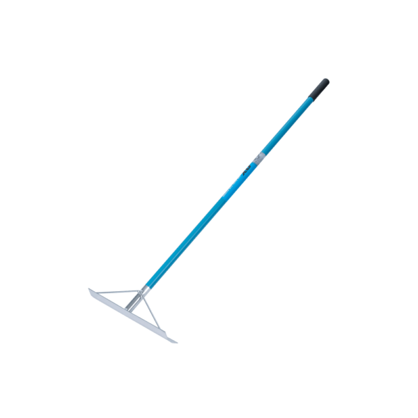 Constructed with the professional tradesperson in mind, the OX Pro Aluminium Concrete Rake combines durability with functionality to enhance efficiency on the job site. The lightweight aluminium construction ensures ease of handling, reducing user fatigue during prolonged use. The 1500mm long handle is powder-coated for increased durability and features a soft grip, providing comfort and improved control. The rake is braced for additional strength, ensuring it withstands the rigors of heavy-duty use. Its 45-degree edge angle is specifically designed to facilitate smoother movement of materials such as wet concrete, aggregate, and blue metal, allowing for precise placement and leveling. This tool is indispensable for professionals seeking to achieve high-quality finishes in concrete applications.