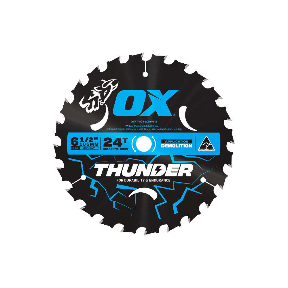 The OX Pro Thunder 6-1/2-Inch Circular Saw Blade with 24 teeth is a high-performance tool engineered for tradesmen seeking precision and durability in their cutting tasks. Manufactured in Australia, this blade incorporates advanced features to ensure exceptional performance across various applications.