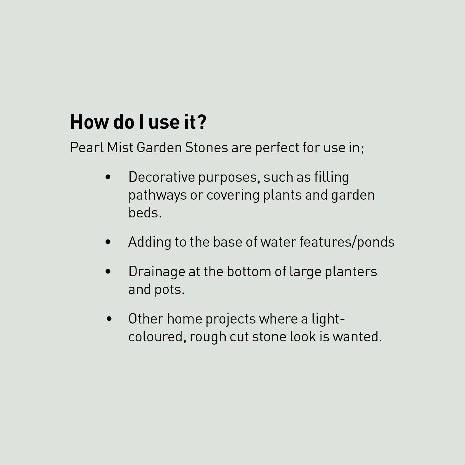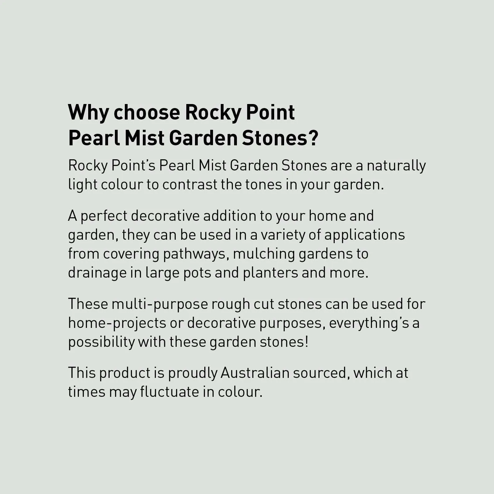 Rocky Point’s Pearl Mist Garden Stone 20kg captures the ethereal beauty of morning mist with its exquisite blend of soft pearl-white and subtle grey tones that create an enchanting, luminous effect in any landscape setting. This premium decorative aggregate features naturally occurring mineral variations that produce gentle color transitions from creamy pearl whites to delicate silver-grey hues, reminiscent of ocean pearls scattered across a misty shore.