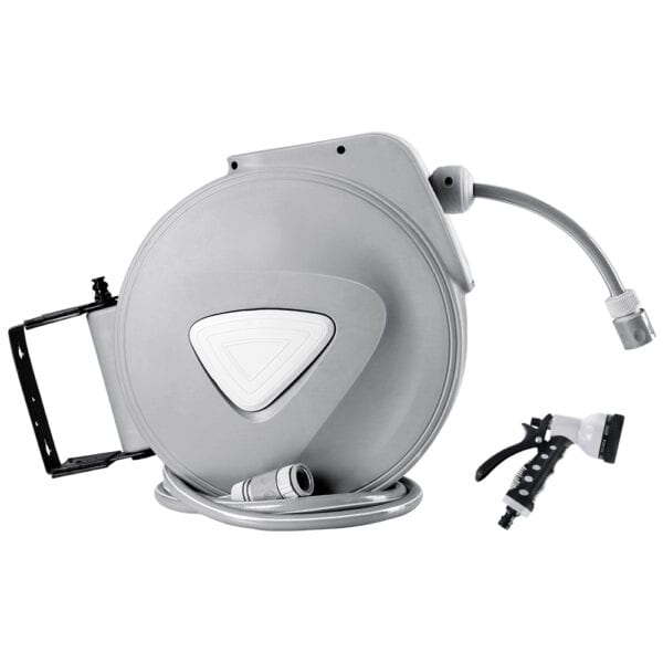 Looking compact and sturdy in a cool grey finish, our 20m Retractable Hose Reel is designed to be wall mounted so that you can use the hose without any encumbrances. The entire assembly can also be swivelled 180 for maximum reach. Both the polypropylene housing and PVC hose are UV-resistant to suit Australian climatic conditions which can be quite harsh during summers.